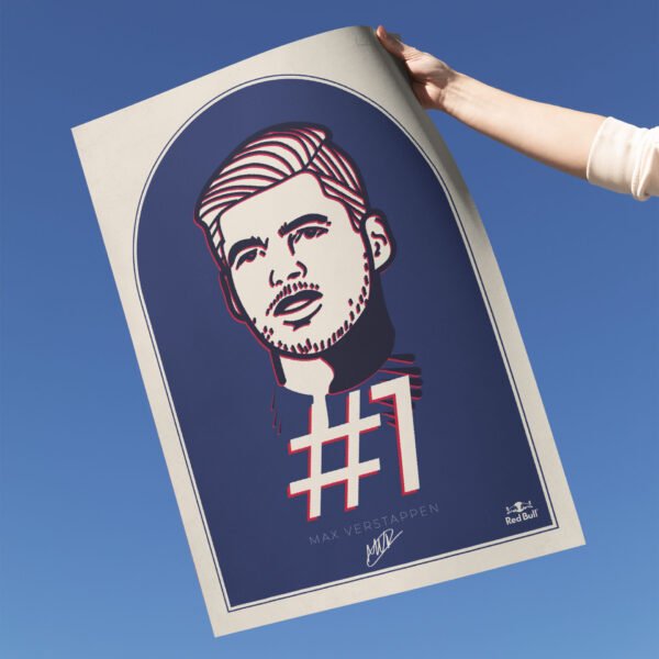 Max Verstappen’s portrait captures his fierce, relentless will to win. We designed it with the iconic Red Bull colours at its heart, alongside his signature, the Red Bull Racing emblem and his #1 racing number. Digitally hand-drawn and ready to take its place of honour on your wall!