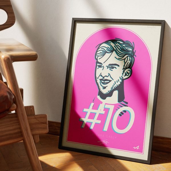 This F1 Pierre Gasly poster was created for those rooting for the Alpine team to regain its strength. We drew this digital artwork by hand and then gave it a hint of a vintage look – so it goes well in pretty much any setup. If you’re a fan of Gasly, this print will make your room look so much cooler.